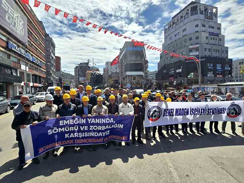 Doruk Madencilik işçilerinin hak gasplarına karşı başlattıkları Ankara yürüyüşü ve açlık grevinin 16’ncı gününde, Zonguldak’ta emek mücadelesine güçlü bir destek verildi. Zonguldak Demokrasi Platformu ile Genel Maden İşçileri Sendikası (GMİS) tarafından ortak bir basın açıklaması ve protesto eylemi gerçekleştirildi.