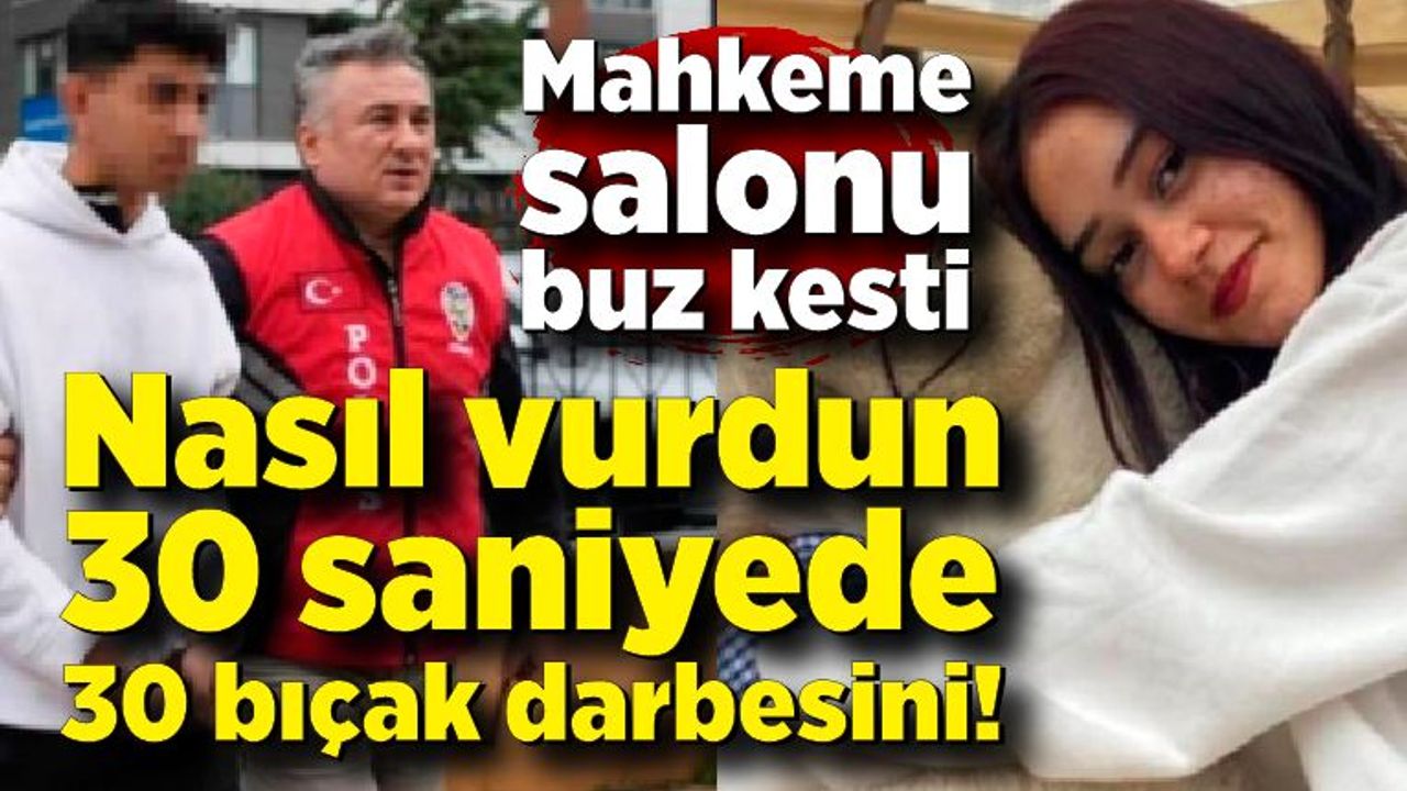 Mahkeme başkanı tutuklu yargılanan sanığa 30 bıçak darbesini kaç dakikada gerçekleştirdiğini sordu. Sanık E.A.' da "30 saniye sürdü" cevabını verdi. Mahkeme başkanı tekrar soruyu yenileyerek, "30 bıçak darbesini 30 saniyede mi vurdun?" sorusunu sorunca zanlı, "Gözüm karardı hatırlamıyorum" diyerek savunma yaptı.