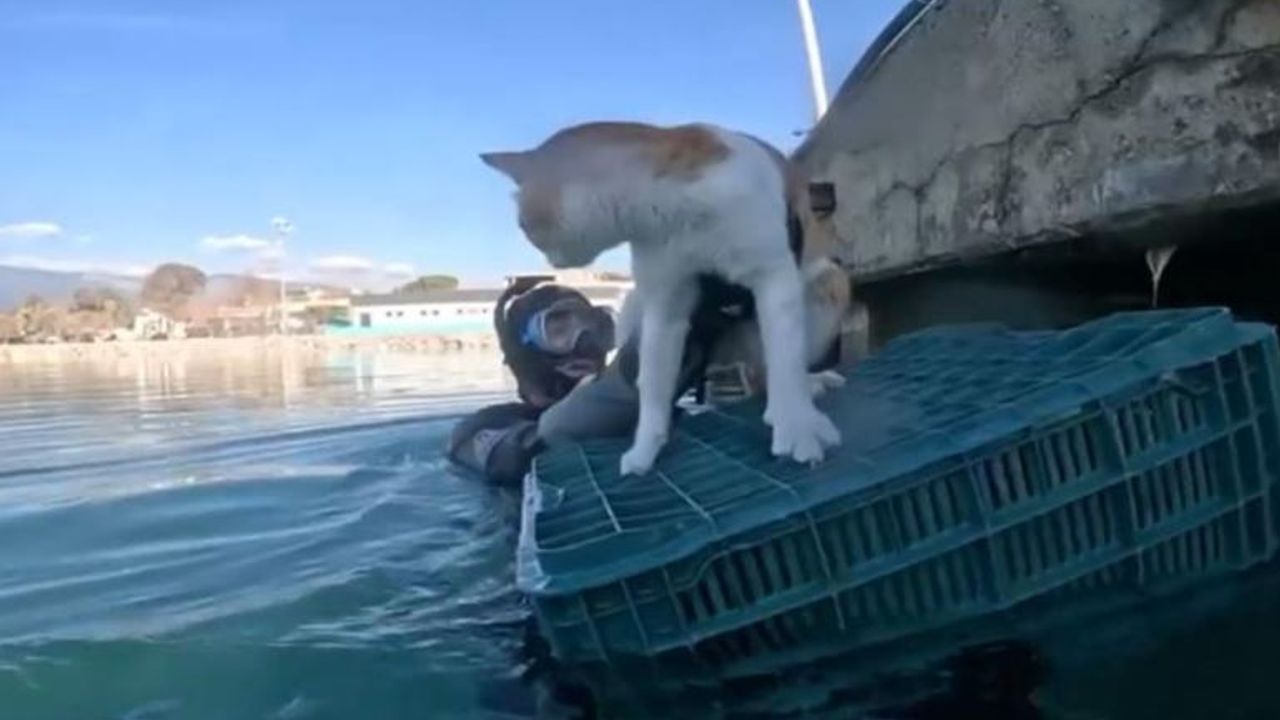 Balık adamlar, korkmuş kediyi yanlarında getirdikleri yüzer bir kasa üzerine alarak güvenli bölgeye çıkardı. Kedinin sağlık durumunun iyi olduğu anlaşılınca, doğal yaşam alanına bırakıldı.