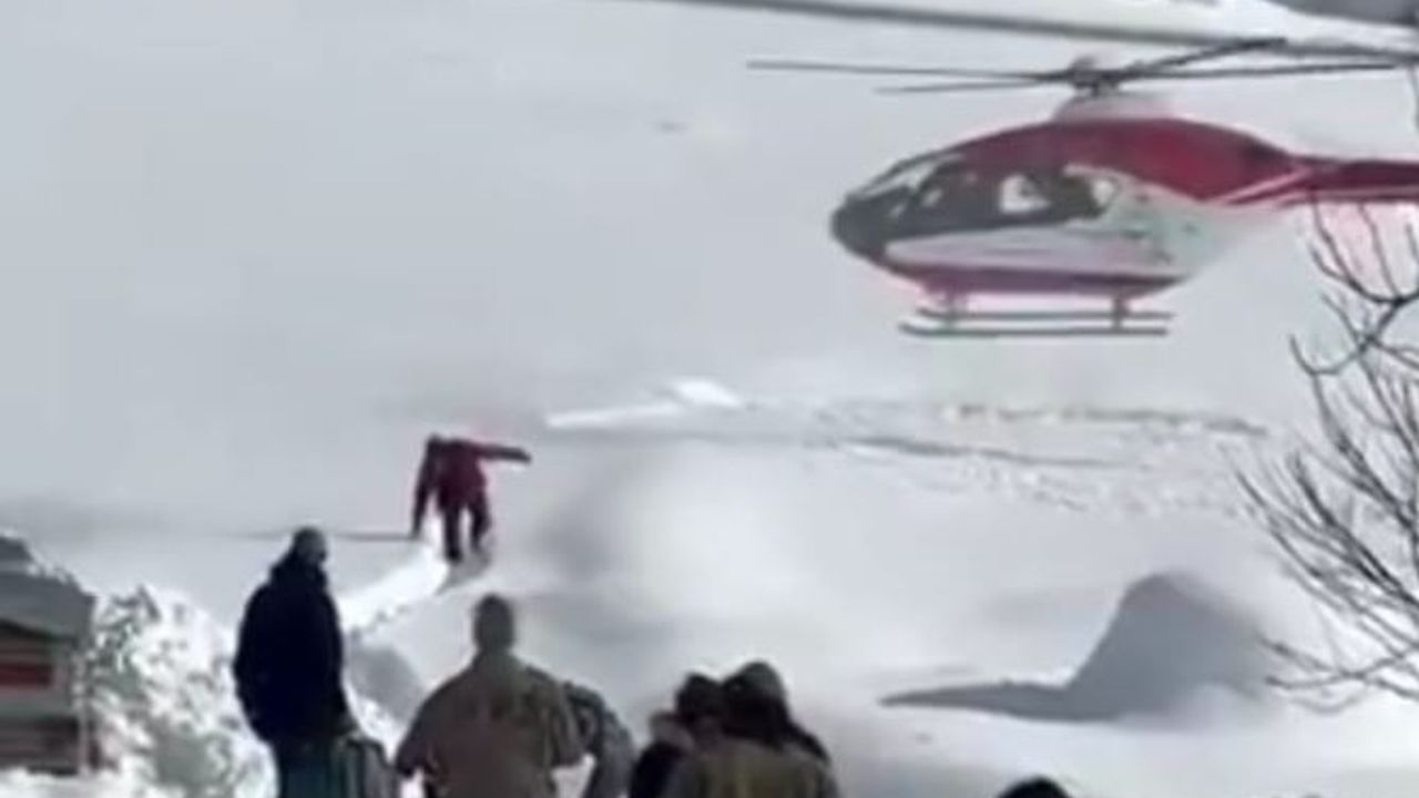 Olumsuz hava şartları ve kapalı yollar nedeniyle bölgeye ambulans helikopter sevk edildi. Zorlu hava koşullarına rağmen helikopter bölgeye ulaştı.