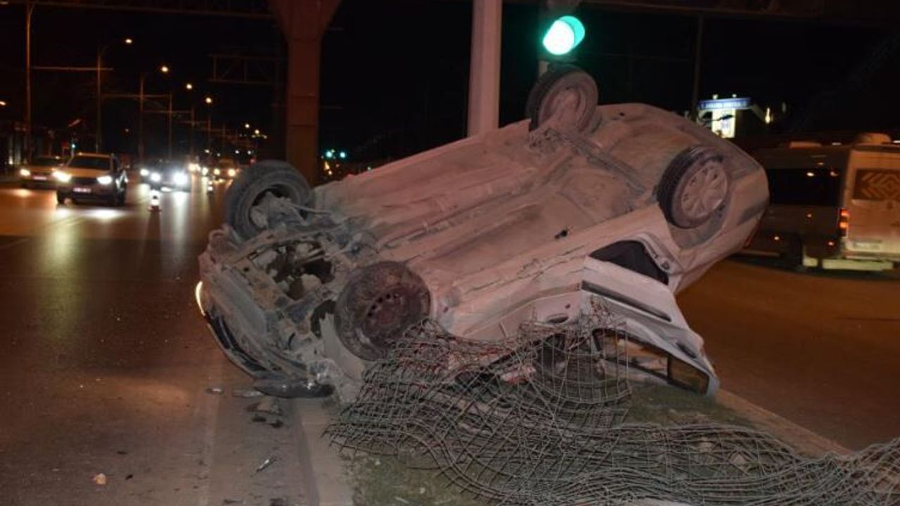 Sürücü B.Ç.’nin direksiyon hakimiyetini kaybetmesi sonucu orta refüje çarpan araç ters döndü. Kazada sürücü yaralandı.