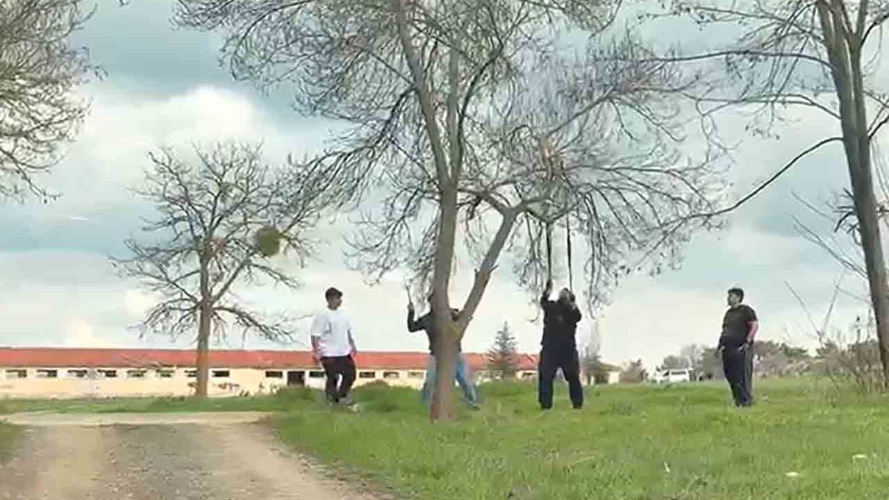 Odunpazarı ilçesi Yenisofça Mahallesi'nde kaydedilen görüntülerde, 4 kişilik bir grubun ağaca attıkları halat ile dal kırmaya çalıştığı göze çarptı. Birinin elinde balta da bulunan şahısların mangal için ağaca zarar vermeye çalıştığı iddia edildi. Gruptan bir başka şahsın ağaç dalına balta salladığı görüldü. Dala takılan ipe asılan şahısların uğraşı ‘pes' dedirtti.