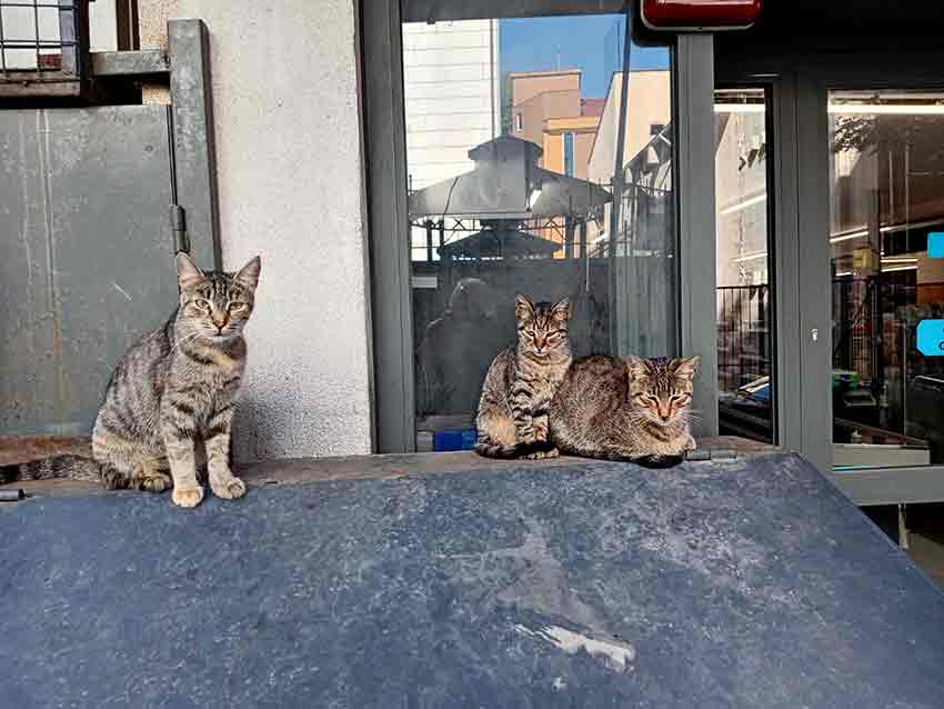 İnsanlara iyice alışmış durumda olan kediler bunun karşılığını da görüyorlar ve markete girip çıkan ve alışveriş yapan birçok müşteri onlar için de bir şeyler alıp önlerine koyuyor.