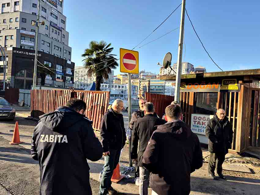 Dün başlayan çalışmalar kapsamında bölgeye gelen Zonguldak Belediyesi Zabıta ekipleri, taksi durağı için alternatif bir alan gösterdi. Ancak taksi durağı başkanı ve durakta çalışan taksiciler, kendilerine önerilen yeni yere tepki göstererek duruma itiraz etti.