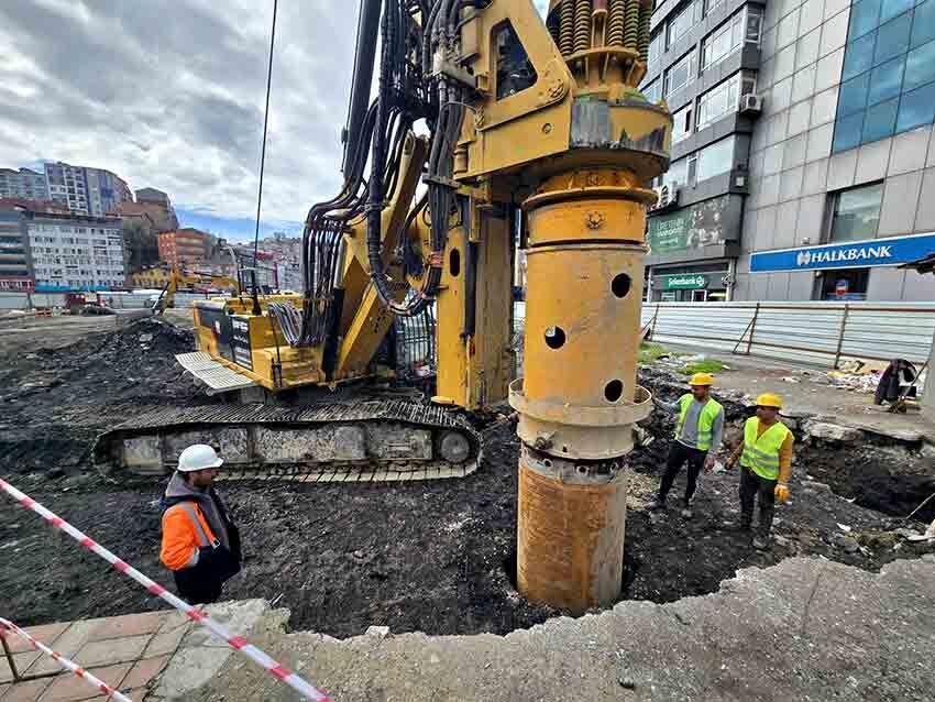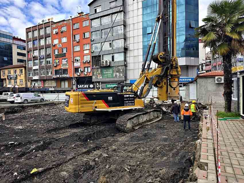 Geredeli İnşaat sahibi Şahin Yalçın, çalışmalarla ilgili yaptığı açıklamada, “Bugün cuma günü bismillah diyerek fore kazık işine başlamış bulunuyoruz. Arazinin etrafına, hafriyat alabilmek için 165 adet iksa kazığı çakacağız. Bu kazıklar 1 metre genişliğinde ve 22 metre uzunluğunda olacak” dedi.