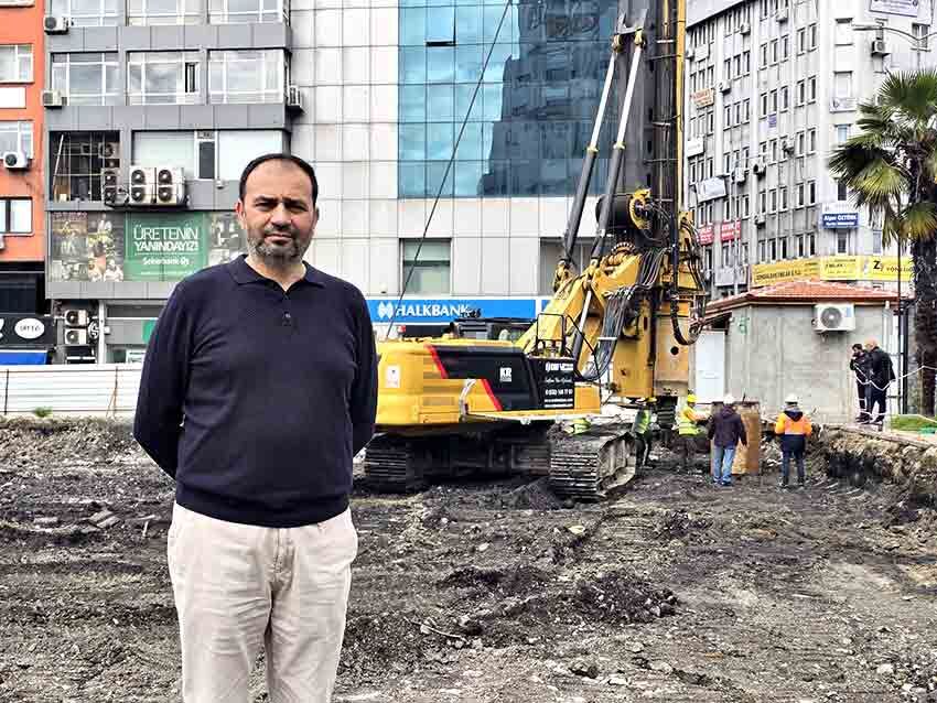 Kazık çakma işlemlerinin ardından yaklaşık 13,5 metre derinliğinde zemin kazısı yapılacağını belirten Yalçın, "Şu anda hayırlısıyla bugün cuma günü bismillah dedik, şu anda gördüğünüz gibi siz de kazık, fore kazık işine başlamış bulunuyoruz. Buraya iksa olarak arazinin etrafına 165 tane bir hafriyat alabilmek için iksa kazığı çakacağız ve bunlar 1 metre genişliğinde, 22 metre boyunda iksa kazıklarımız. Burada daha önce projemizde 3 kat, Zonguldak'ta ilk defa olacak bir şey, zemine 3 kat inmeyi düşünüyorduk. Şu anda inebilirsek 4. katı zorlayacağız ve bu Zonguldak'ta daha da ilk olacak. Onu da Geredeli İnşaat olarak biz başaracağız inşallah. Yani burada herhangi bir zemine, buraya 3 veya 4 kat inen tek firma olacağız. Bununla da tabii gurur duyacağız. Şu anda hayırlısıyla kazıklara başladık. İksa kazıklarımız 165 tane civarında. Ondan sonra da 13,5 metre zemin kazısı yapacağız. Tabii bunları 2,5 metrede bir ankraj yaparak devam edeceğiz. Zemine geldiğimizde de, 13,5 metreye geldiğimizde takriben 250 adet de orada, temelle ilgili binayla ilgili kazıklarımız var. Tabii onlara ulaşmamız takriben 3 ay gibi bir zamanımızı alacak, 2-3 ay sonra. Ha burada inşaata başlamamız bizim genelde 7-8 ay sonra falan planlıyoruz inşaata. Yani bu 2026 yılı içinde başlayacağız ama 7-8 ay sürer bu, çünkü bayağı önemli bir iş. Bayağı büyük, önemli iş. Öyle, şu anda başladık hayırlısıyla, devam ediyoruz.