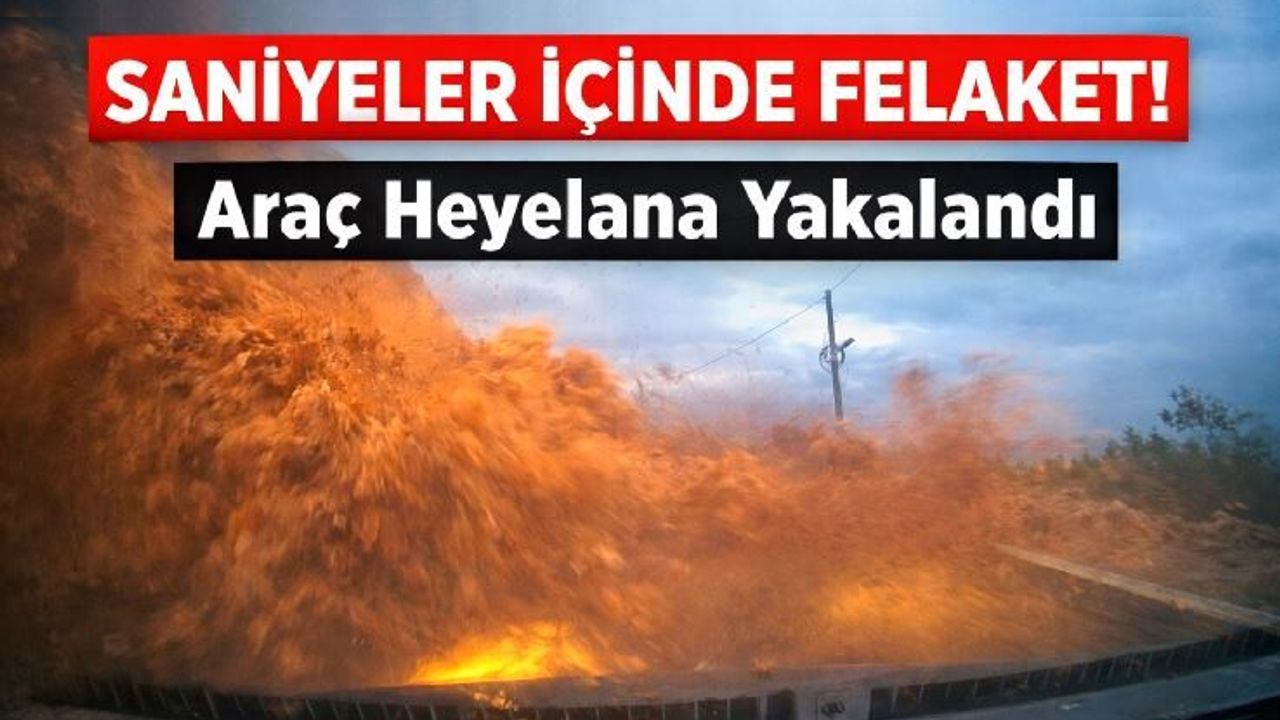 Öte yandan heyelan anı, olay sırasında toprak ve kaya parçalarının altında kalan aracın araç kamerasına yansıdı. Görüntülerde, otomobilin bir anda yuvarlanan toprak ve kaya parçalarının altında kaldığı, bu sırada