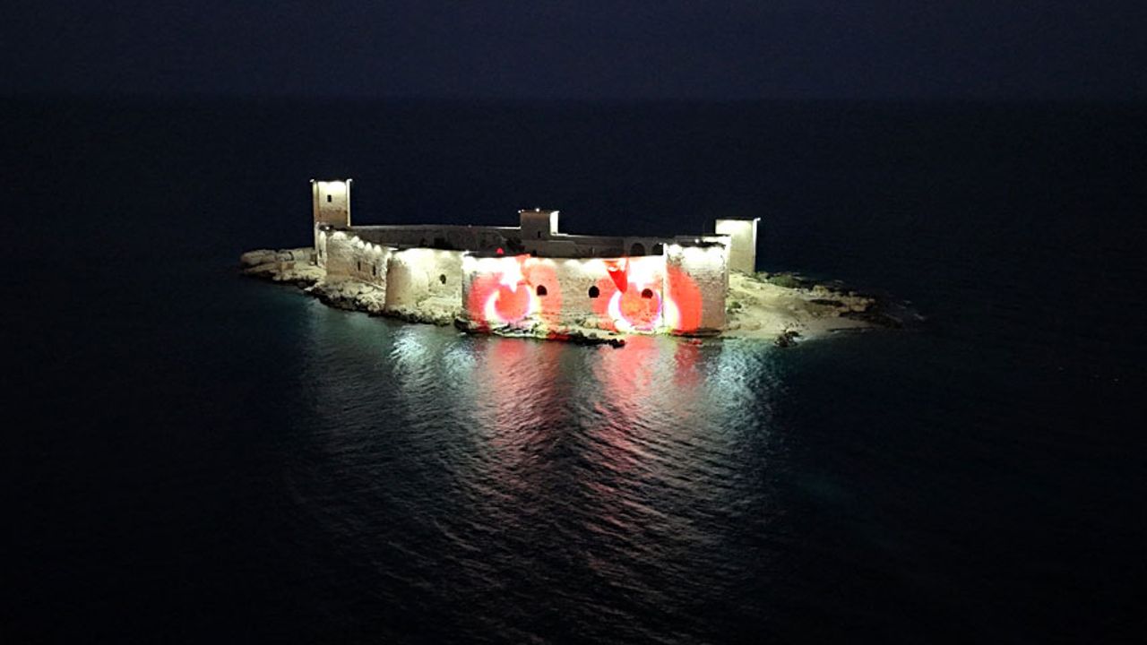 Cumhurbaşkanı Recep Tayyip Erdoğan'ın 'Terörsüz Türkiye' çağrısıyla birlikte, Mersin'in Erdemli ilçesinde yer alan ve UNESCO Dünya Kültür Mirası Geçici Listesi'ndeki Korykos Antik Kenti'nin en önemli parçası Kızkalesi'ne Türk Bayrağı'nın simgesi ay yıldız yansıtıldı. Valilik himayesinde İl Kültür ve Turizm Müdürlüğü koordinesinde yapılan ve kalenin duvarını kapsayan ışıklandırma dron ile havadan görüntülendi.