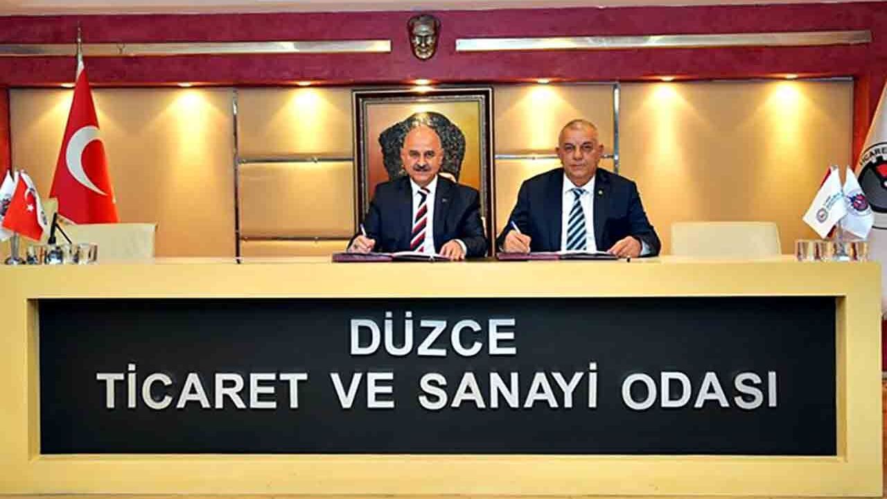 Düzce Ticaret ve Sanayi Odası’nda imzalanan protokolü Kaynaşlı Meslek Yüksekokulu adına Düzce Üniversitesi Rektörü Prof. Dr. Nedim Sözbir, DTSO adına Yönetim Kurulu Başkanı Erdoğan Bıyık imzaladı. Protokol; Kaynaşlı Meslek Yüksekokulu öğrencilerinin İşletmede Mesleki Eğitim Dersi kapsamında uygulamalı eğitimini Düzce Ticaret ve Sanayi Odası’nda gerçekleştirmesine yönelik iş birliği ve genel esasları kapsıyor.