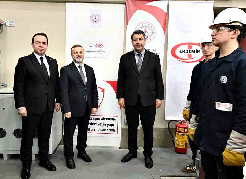 Erdemir Genel Müdürü Şaban Yazıcı, yaptığı konuşmada “Erdemir olarak mesleki ve teknik eğitimin güçlenmesini, sanayimizin geleceği açısından stratejik bir yatırım olarak görüyoruz. Öğrencilerimizin modern üretim teknolojileriyle tanışmasını sağlayacak bu katkının hem bölgenin kalkınmasına hem de nitelikli iş gücünün yetişmesine önemli bir ivme kazandıracağına inanıyoruz. Eğitim kurumlarımızla iş birliğimizi ve bölgemizde eğitime olan katkılarımızı sürdürmeye devam edeceğiz.” dedi.