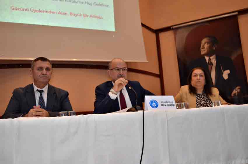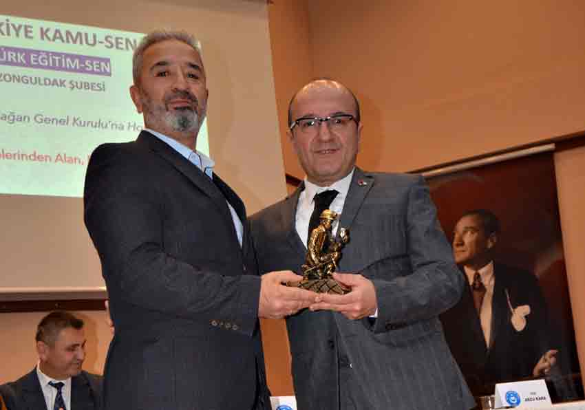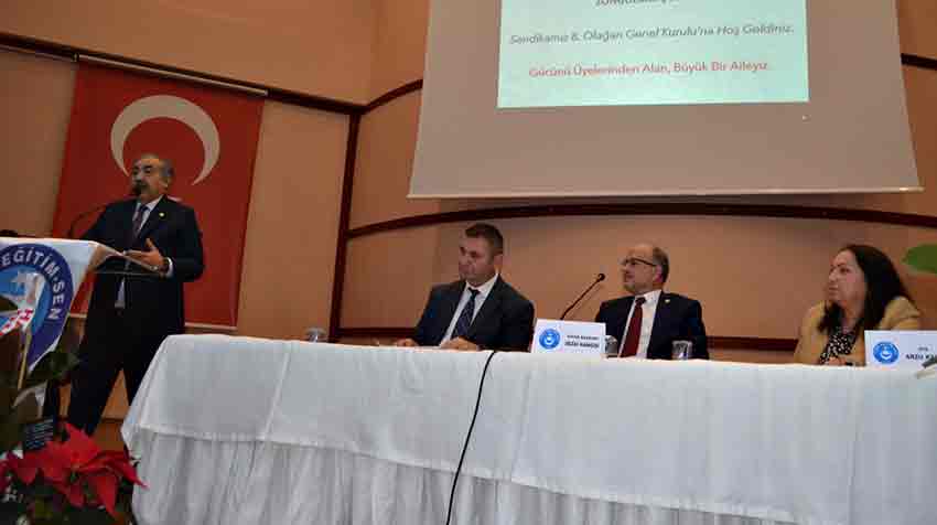 Türk Eğitim-Sen Zonguldak Şube Başkanı Şahin Ören, genel kurulda yaptığı konuşmada sendikal mücadelesindeki deneyimlerini aktararak şu ifadeleri kullandı: