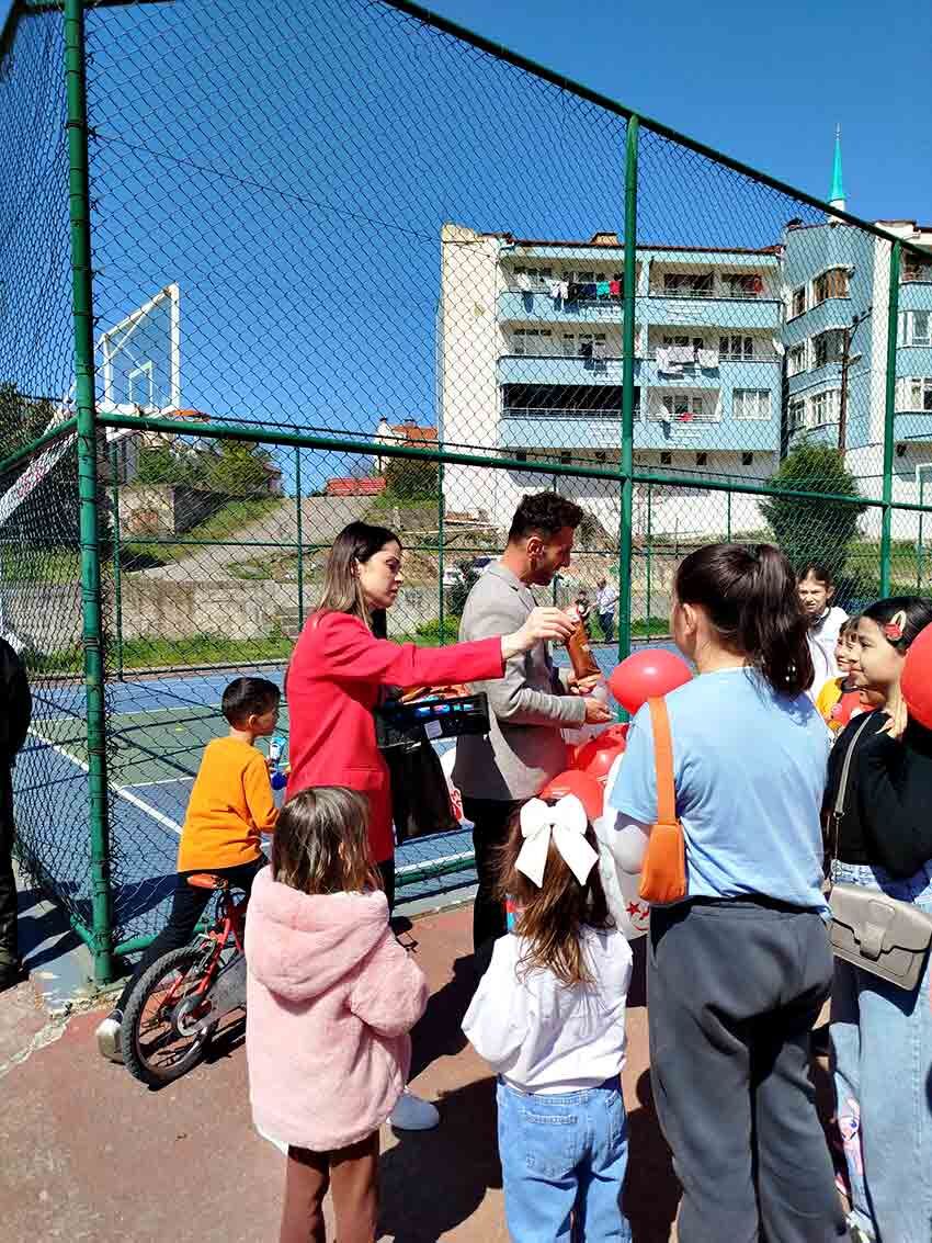 Karali çifti, parkları gezerek çocuklarla yakından ilgilendi. Etkinlik kapsamında çocuklara balon ve dondurma ikram edildi.