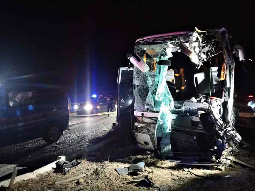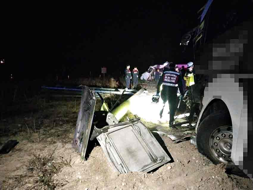 Denizli'de minibüs ile şehirlerarası yolcu otobüsü çarpıştı. Minibüsün devrildiği, otobüsün yoldan çıktığı kazada otobüs şoförü hayatını kaybederken, 13 kişi de yaralandı.