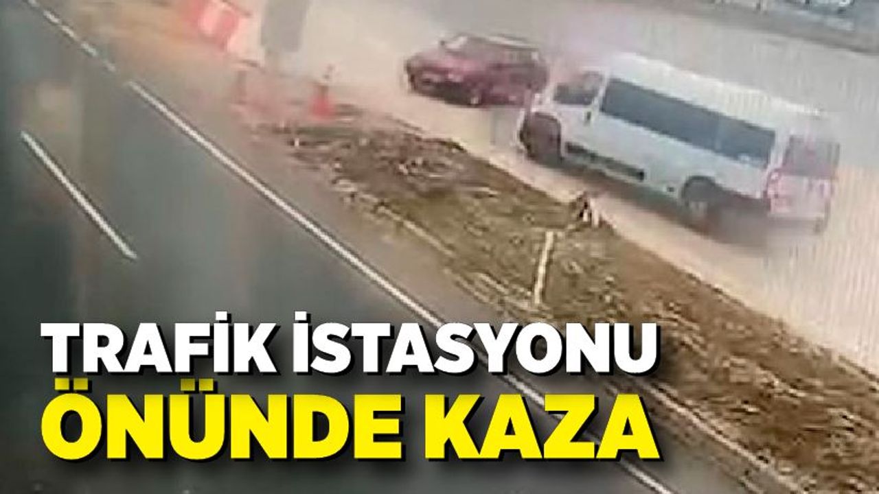 Bolu'da trafik istasyonu önünde minibüsle çarpışan otomobildeki sürücü yaralandı. O anlar güvenlik kamerasına yansıdı.