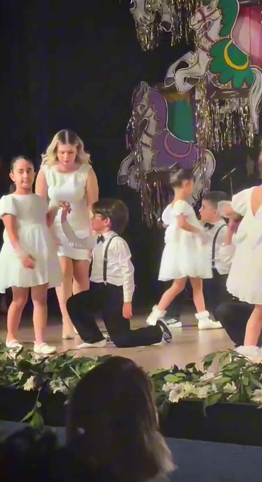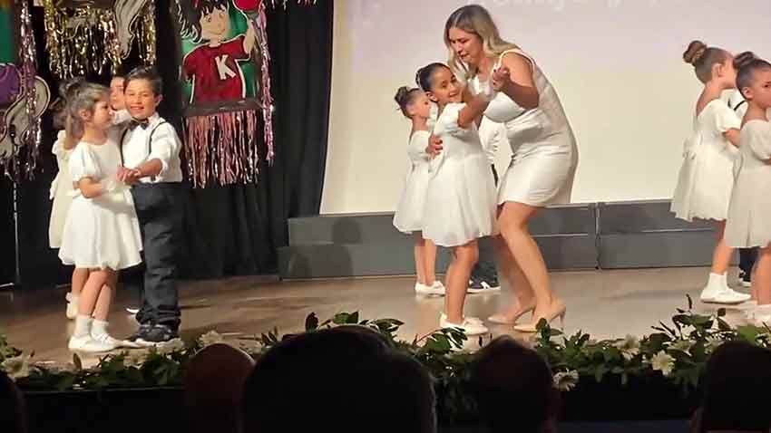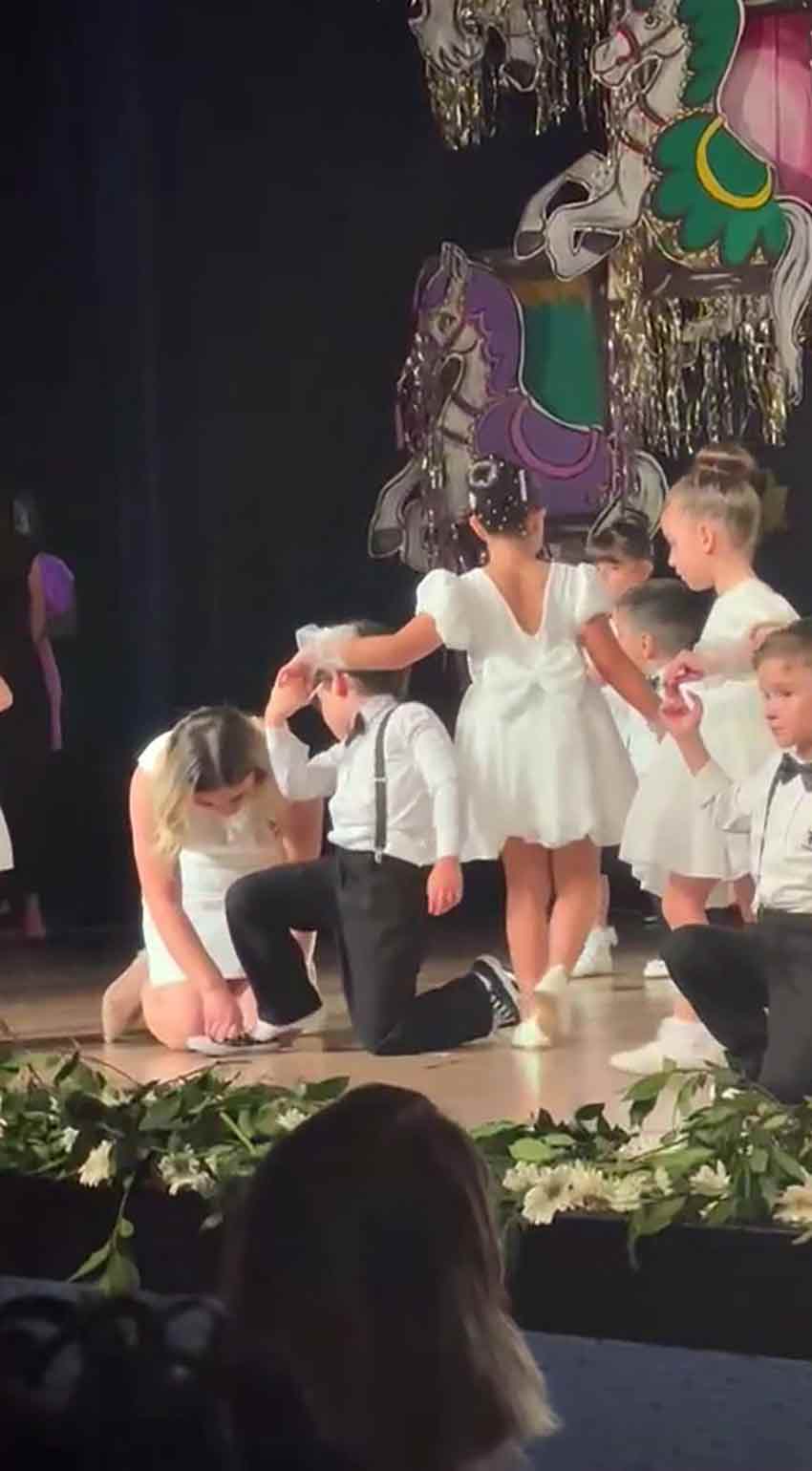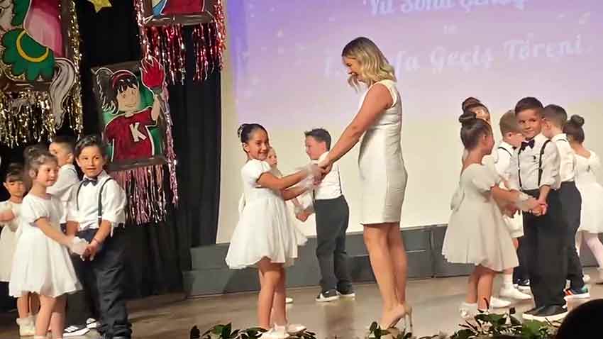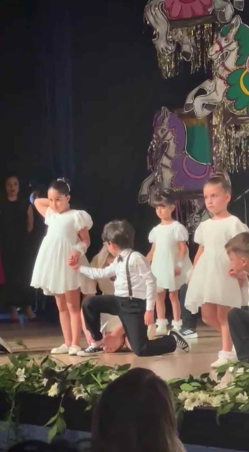 Etkinlik sırasında sahneye çıkan kız ve erkek çocuklar müzik eşliğinde dans etmeye başladı. Gösteri sırasında erkek öğrencilerden birinin ayakkabısı çıktı. Partnerinin elini tuttuğu anda eğilen minik öğrenci, ayakkabısının çıkmasıyla zor anlar yaşadı. Durumu fark eden öğretmen Gözde Özlem Kıral sahneye koşarak çocuğun ayakkabısını giydirmeye çalıştı. Ancak dans devam ederken çocuğun ayakkabısı bir kez daha çıktı. Bunun üzerine öğretmen, bu kez çocuğu sahneden alarak dışarı çıkardı. Minik öğrenci, ayakkabısını sahnede bırakıp dışarı yönelirken, partneri olan küçük kız dans eden arkadaşlarına eşlik etmeye çalıştı.