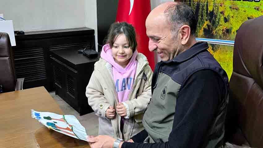 Gerçekleştirilen ziyarette minik orman dostları, hazırladıkları orman temalı resimleri Orman Bölge Müdürü Hasan Keskin’e takdim etti.