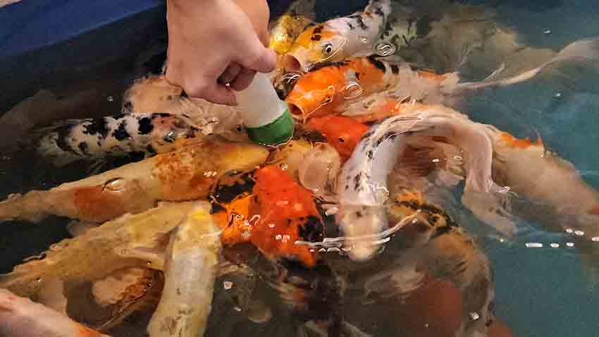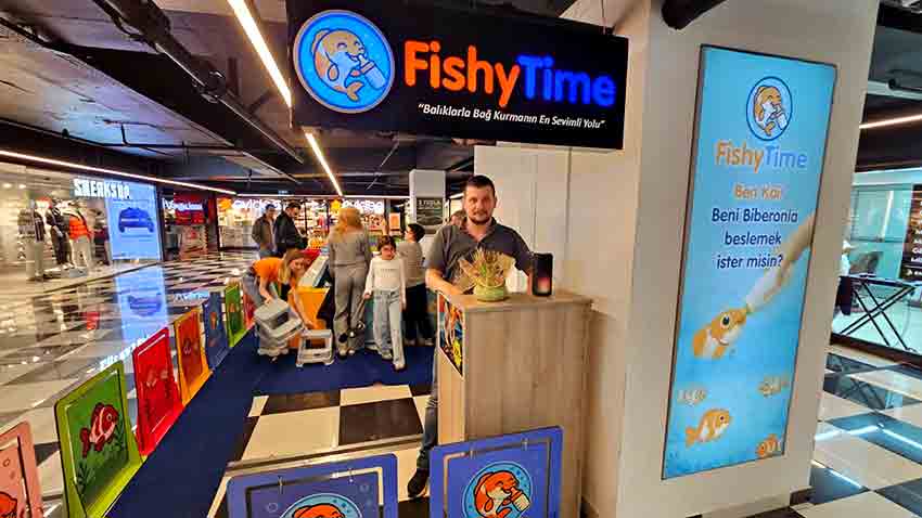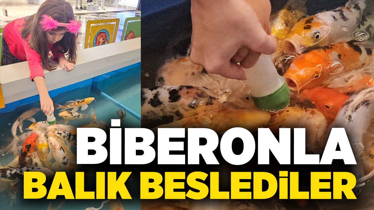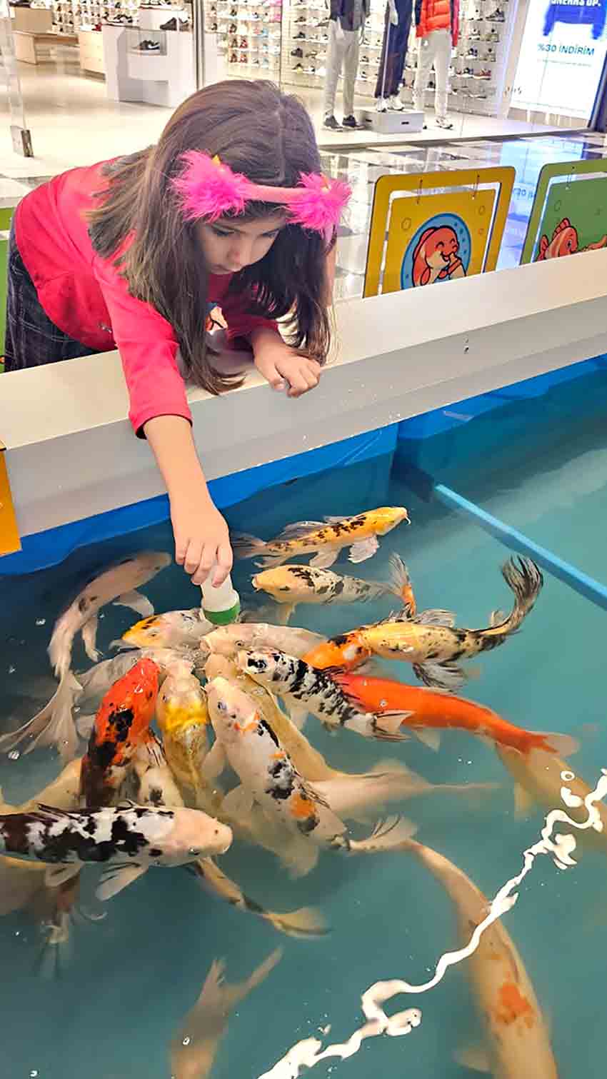 Zonguldak’taki bir alışveriş merkezinde yaklaşık bir ay önce hizmete giren "biberonla koi balığı besleme" etkinliği, hafta sonları çocukların yoğun ilgisini çekiyor. Aileler çocuklarıyla birlikte etkinlik alanında sıraya girerken, görevli personel gözetiminde biberonla balık beslemesi yapılıyor.