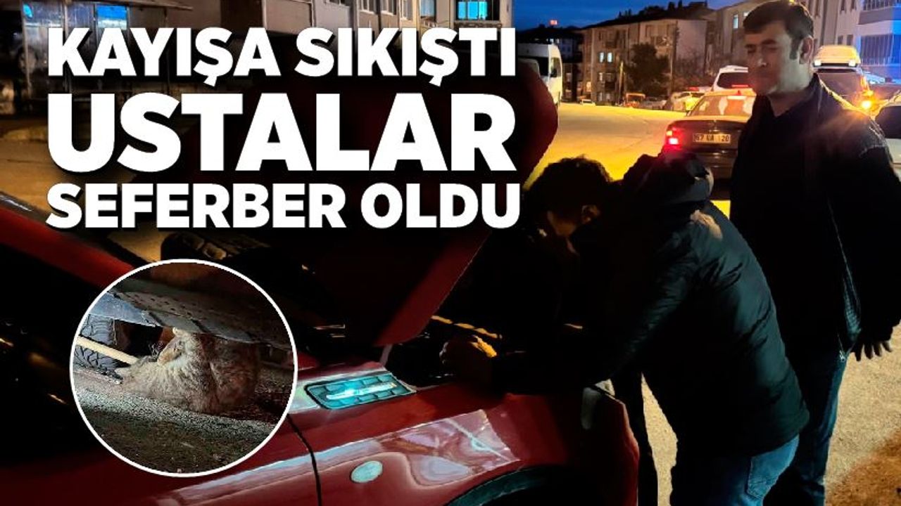 Olay yerine gelen usta, motor bölümünde kedinin bulunduğu noktaya ulaşabilmek için bazı parçaları söktü. Yaklaşık bir saat süren titiz çalışmanın ardından kuyruğu kayışa takılan kedi sıkıştığı yerden kurtarıldı.