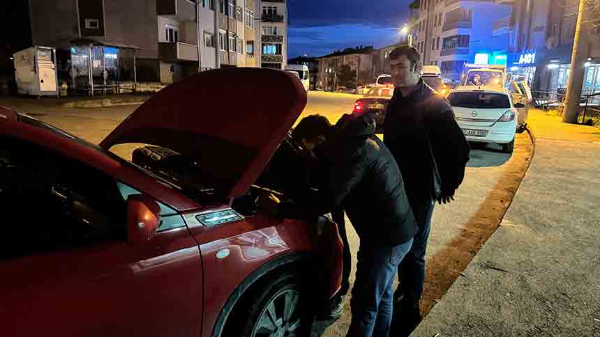 Olay, Alaplı ilçesi Yeni Siteler Mahallesi’nde meydana geldi. İş yerinden ayrılmak üzere otomobiline binen sürücü, kaputtan gelen kedi sesini fark edince aracını hemen kenara çekti. Kaputu açan araç sahibi, bir kedinin motor kısmındaki devir daim kayışına sıkıştığını gördü.