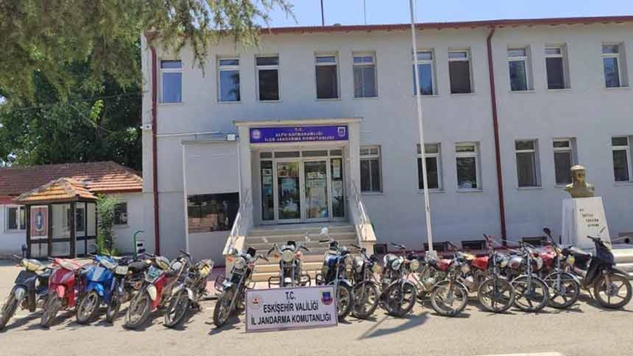 Eskişehir İl Jandarma Komutanlığına bağlı ekiplerce çalışması neticesinde Alpu ilçesinde şüpheli şahısların kırsal alanda kullandığı motosikletlerin motor ve şasi numaralarını silerek değiştirdikleri, ruhsat ve resmî belge olmadan kullandıkları yönünde bilgiler alındı. Alpu ilçesinde tarihinde icra edilen operasyon neticesinde 16 şüpheli jandarma tarafından yakalandı. Bahse konu motor, şase numarası değiştirilmiş, plakasız ve belgesiz 16 adet motosiklet ele geçirildi. Şüpheli şahıslar hakkında işlem yapıldı.