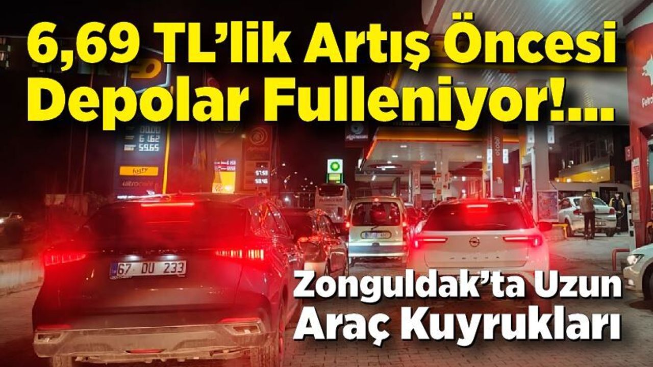 Motorine bu gece yapılması beklenen 6 lira 69 kuruşluk zam öncesi Zonguldak’ta akaryakıt istasyonlarında yoğunluk yaşandı. Zamdan etkilenmek istemeyen sürücüler, akşam saatlerinden itibaren benzinliklere akın etti.
