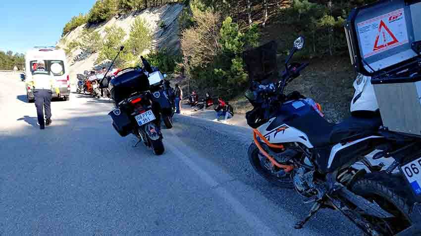 Edinilen bilgiye göre, Ankara'dan gezi amacıyla ilçeye gelen 20 kişilik motosiklet grubunda yer alan Ertuğrul Hazinedar idaresindeki 06 TD 793 plakalı motosiklet, dün dönüş yolculuğu sırasında Aynalıkaya mevkisinde virajı alamayarak yol kenarındaki tabelaya çarptı. Çarpmanın etkisiyle savrularak ağır yaralanan Hazinedar, olay yerine gelen sağlık ekiplerinin ilk müdahalesinin ardından ilçe hastanesine kaldırıldı.