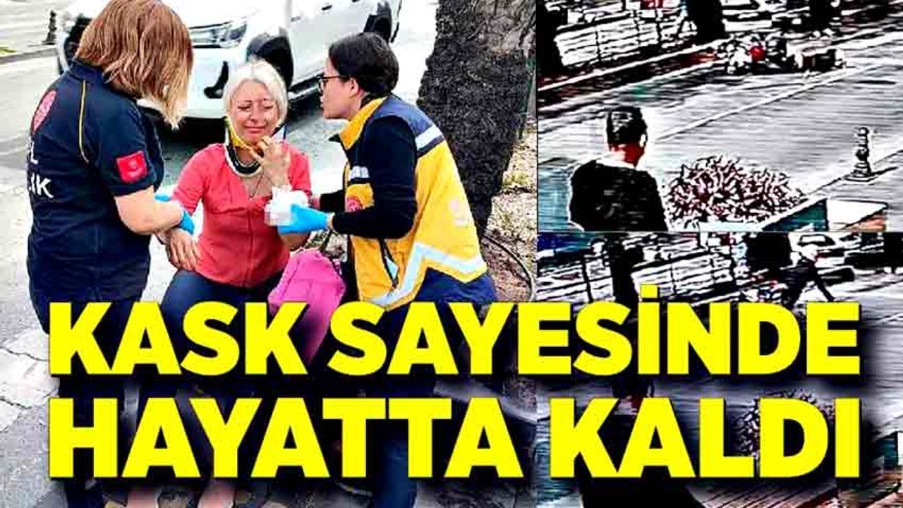Antalya'nın Manavgat ilçesinde yaya geçidinde frene basan ve kayıp devrilen motosikletten savrulan kadın sürücü başındaki kask sayesinde hayatta kaldı. Kafasını asfalta sert bir şekilde çarpan kadın hafif şekilde yaralanırken başını yere çaptığı anlar güvenlik kamerası tarafından saniye saniye görüntülendi. Sürücü arkasından gelen bir kamyonetin altında kalmaktan da son anda kurtuldu.