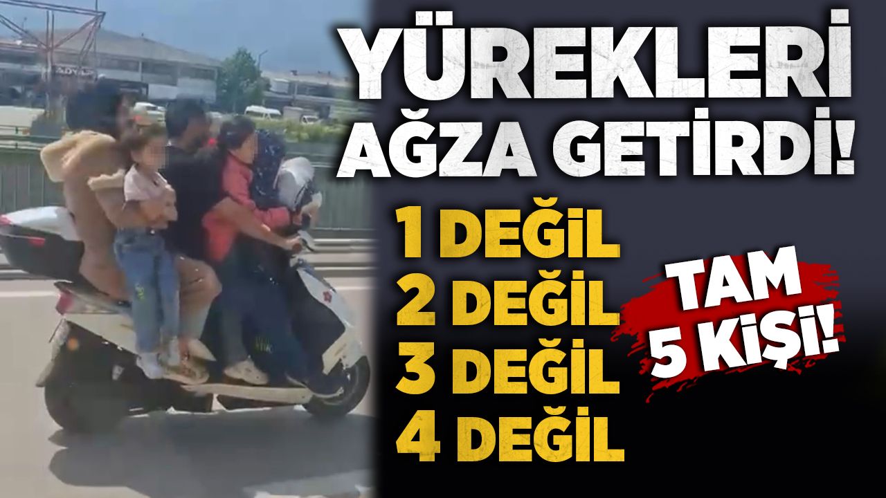 Bursa’da anayol üzerinde motora 5 kişi binen aile, yaptığı tehlikeli seyahatle yürekleri ağza getirdi. Çocuklarında bulunduğu motosikleti görenler şaşkınlıklarını gizleyemedi.