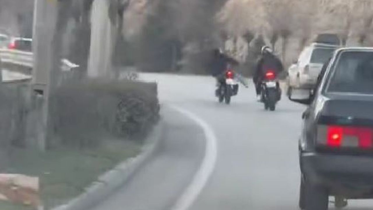 Adnan Menderes Bulvarı Kireçkuyusu mevkisinde seyir halinde olan araç sürücüleri, motosiklet üzerinde akrobatik hareketler yapan motosikletlileri şaşkınlıkla izledi. Safranbolu istikametine seyir halinde olan motosikletliler bacaklarını kaldırıp tehlikeli şekilde şerit değiştirdi. Motosikletliler daha sonra yalpalayarak gözlerden kayboldu.