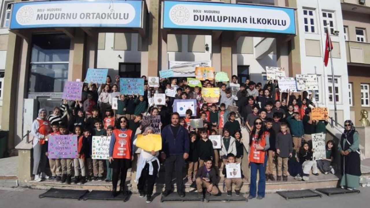 Mudurnu Dumlupınar İlkokulu öğrencileri, öğretmenleri, okul müdürü ile Bolu Abant İzzet Baysal Üniversitesi öğrencileri katıldı. Öğrenciler, gönüllüler ve öğretmenler, 4. Etap TOKİ bölgesinde erozyon farkındalık yürüyüşü yaptı. Yürüyüşte ilkokul öğrencileri, "Sağlıklı toprak, güvenli gıda", "Toprağı korumak sofranı korumaktır" ve "Doğayı koru, yaşamı sürdür" yazılı pankartlar taşıyarak doğal kaynakların korunmasına dikkat çekti.