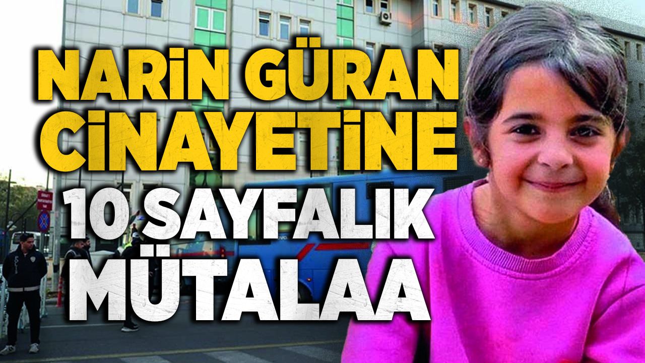 Merkez Bağlar ilçesinin Tavşantepe Mahallesi'nde 21 Ağustos'ta kaybolan ve 8 Eylül'de Eğertutmaz Deresi'nde cansız bedenine ulaşılan Narin Güran'ın öldürülmesine ilişkin tutuklu sanıklar Birsen, Fuat ve Maşallah Güran, Salim Güran'ın işçisi Mehmet Selim Atasoy, Mehmet Şevket Kaya ve Muhammed Kaya ile tutuksuz sanıklar Şeyma Kaya, Hediye Güran, İbrahim Halil Güran, Barış Güran, Kurtuluş Güran ve Ömer Faruk Güran ile suça sürüklenen çocuklar R.A. (16), M.G. (16) ve İ.K.'nin (17) "suçluyu kayırma" suçundan yargılandığı davada, Cumhuriyet savcısı esas hakkındaki mütalaasını tamamladı.
