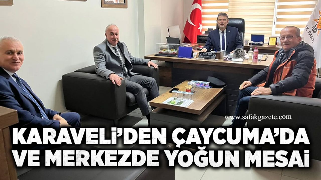 Karaveli ve beraberindeki heyet, daha sonra Çaycuma İlçe Özel İdare Müdürü Kemalettin Yaşar’ı ziyaret etti. İlçe Özel İdaresi’nin yürüttüğü çalışmalar ele alınırken, karşılıklı istişareler yapıldı. Başkan Karaveli, Müdür Yaşar’a çalışmalarında başarılar diledi.