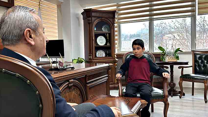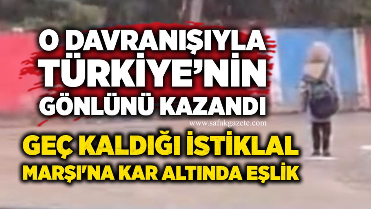 Karabük'te okula giderken İstiklal Marşı'nın okunduğunu duyan ve kar yağışı altında saygı duruşuna geçerek marşa eşlik eden öğrenci, örnek davranışı dolayısıyla İl Milli Eğitim Müdürü Nevzat Akbaş tarafından ödüllendirildi.
