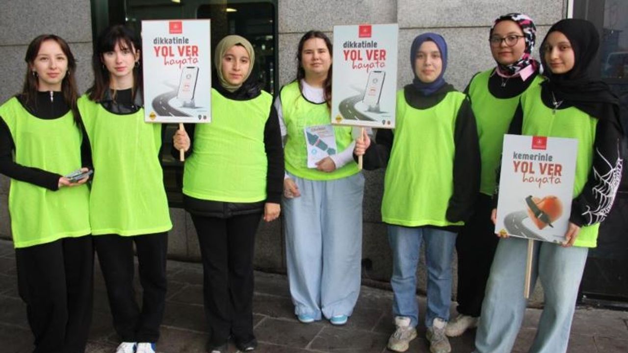 Bolu'da lise öğrencileri, Şehirlerarası Otobüs Terminalinde trafik polisleriyle birlikte yolcu ve şoförlere uyarıda bulundu.
