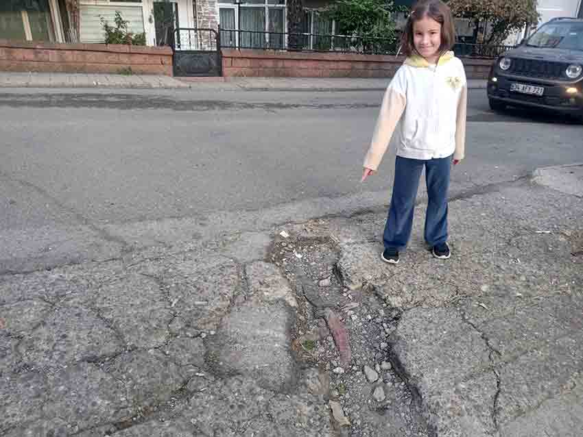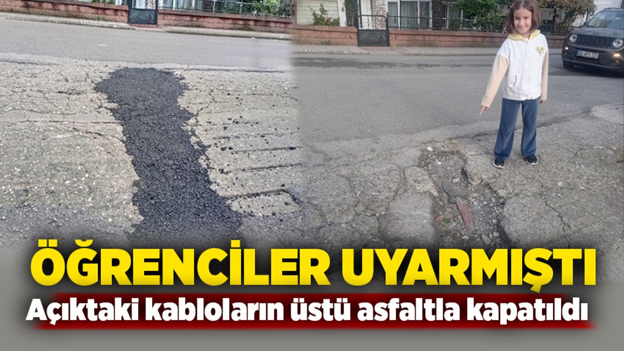 467 Evler semtinde bulunan yol üzerinde açığa çıkmış çeşitli kabloları işaret ederek “bunlar ne kablosu, içlerinde elektrik kablosu da var mı, korkuyoruz” şeklinde düşüncelerine getiren Defne Aksu isimli minik öğrencinin endişelerini haklı bulan yöneticiler olaya sessiz kalmadılar ve uyarıdan birkaç gün sonra kabloların üstünü döktükleri asfaltla kapattılar.