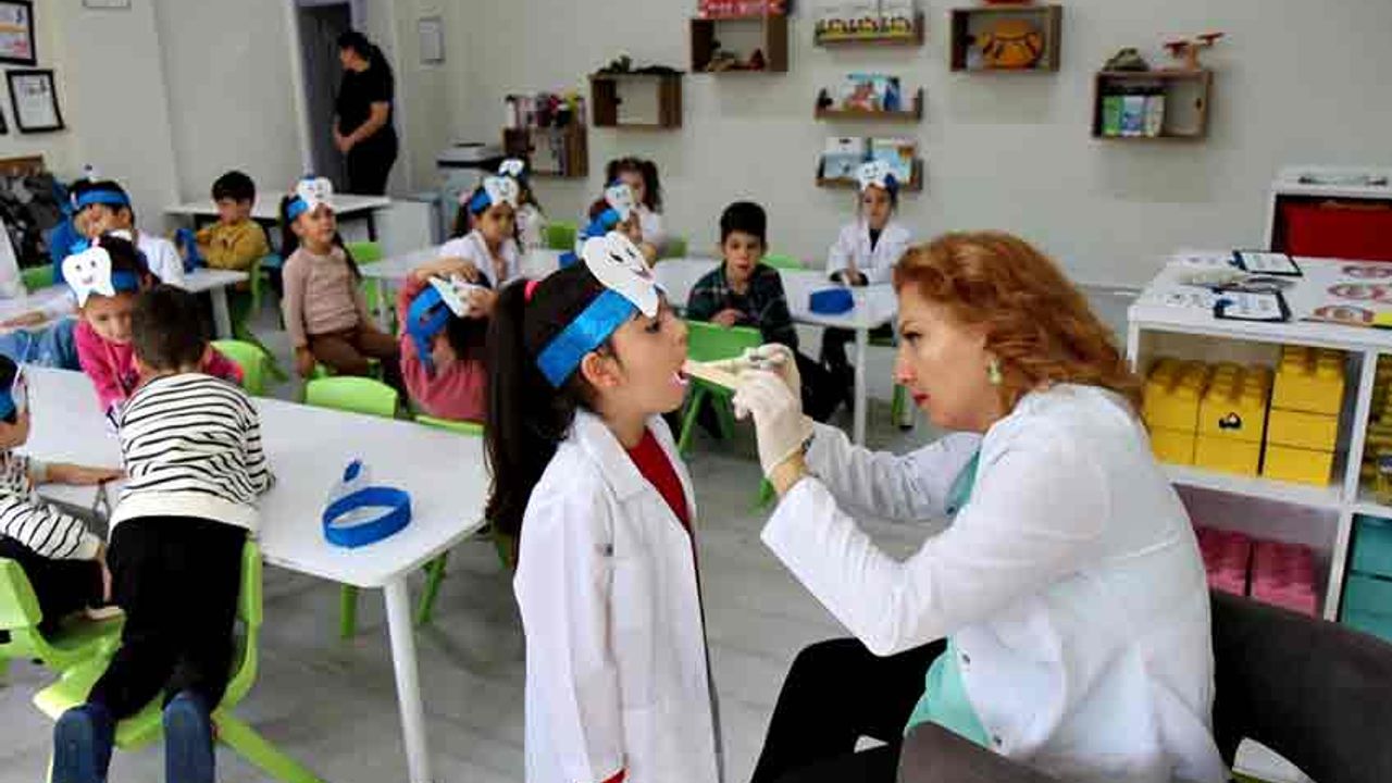 17-23 Kasım Toplum Ağız ve Diş Sağlığı Haftası’nda çocuklara diş fırçalama alışkanlığını kazandırmak, erken yaşlarda ağız ve diş sağlığının önemini anlamalarını sağlamak amacıyla Zübeyde Hanım Anaokulu’nda etkinlik düzenlendi. Denizli İl Sağlık Müdürü Uz.Dr. Berna Öztürk, İl Milli Eğitim Müdürü Emre Çalışkan, öğretmenler ve öğrencilerin katıldığı etkinlikte Diş Hekimi Fethiye Çelik tarafından öğrencilere ağız ve diş bakımının nasıl yapılacağı, doğru diş fırçalama teknikleri konusunda bilgi verildi. Diş maketi üzerinde diş fırçalamanın nasıl yapılacağını öğrenen minik öğrenciler, hem eğlendi, hem de merak ettikleri soruları sordu.