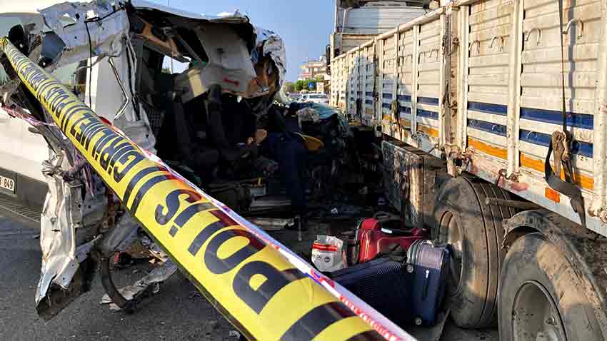 Mersin'in Erdemli ilçesinde yurt çocuklarını taşıyan minibüsün park halindeki tıra arkadan çarpmasıyla meydana gelen kazada biri çocuk 2 kişi öldü, 10 kişi yaralandı.