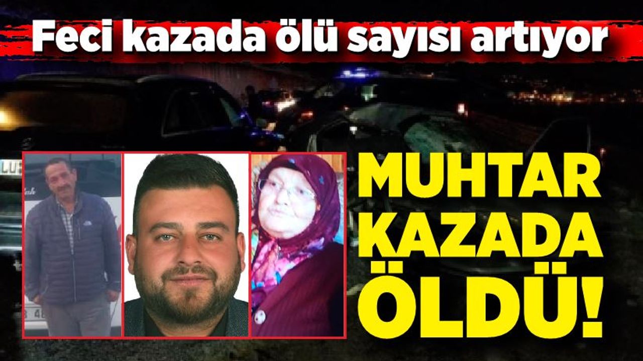 Kazada Tümerkan Mahallesi Muhtarı Recep Kaya olay yerinde yaşamını yitirirken, otomobilde bulunan Avni Demirtaş kaldırıldığı hastanede hayatını kaybetti.