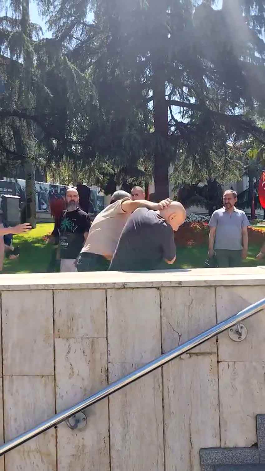 Edinilen bilgiye göre, Atatürk Caddesi üzerinde iki kişi arasında bilinmeyen bir nedenle tartışma çıktı. Taraflar arasında yaşanan küfürleşmenin ardından yumruklar havada uçuştu. Çevredekiler kavgayı ayırmakta güçlük çekerken, kısa süreli panik yaşandı. O anlar bir vatandaş tarafından cep telefonu kamerasıyla kaydedildi.