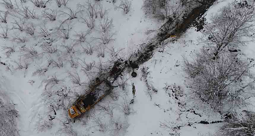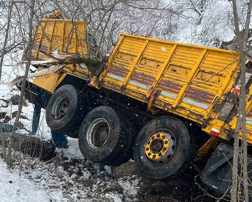 Ordu’nun Korgan ilçesi Tepe Mahallesi Köyceğiz Küme Evleri mevkiinde, yem yüklü tır kar nedeniyle kayganlaşan yolda sürücünün kontrolünden çıkarak uçuruma yuvarlandı.