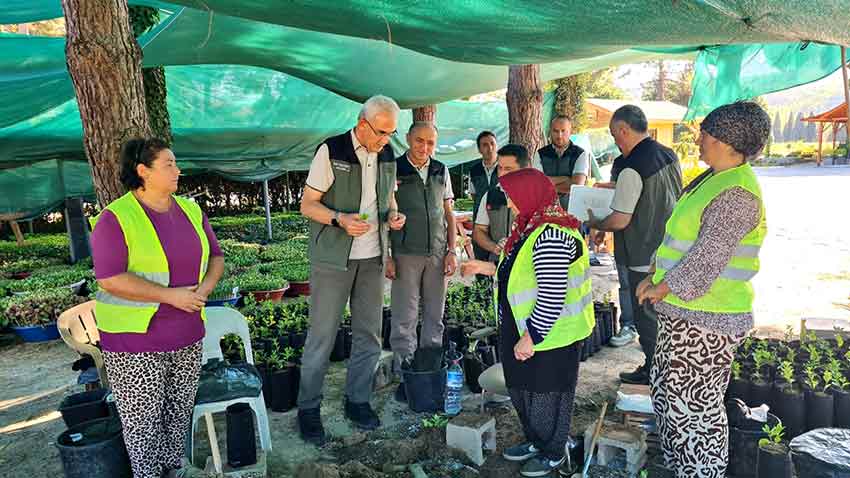 Gökçebey Fidanlığında Orman Bölge Müdürü Hasan Keskin ve Fidanlık Müdüründen yapılan çalışmalar halkında bilgi alan Orman Genel Müdürü Bekir Karacabey, fidanlık çalışanlarıyla sohbet ederek tohum ayıklama ve çelik alma yaptı.