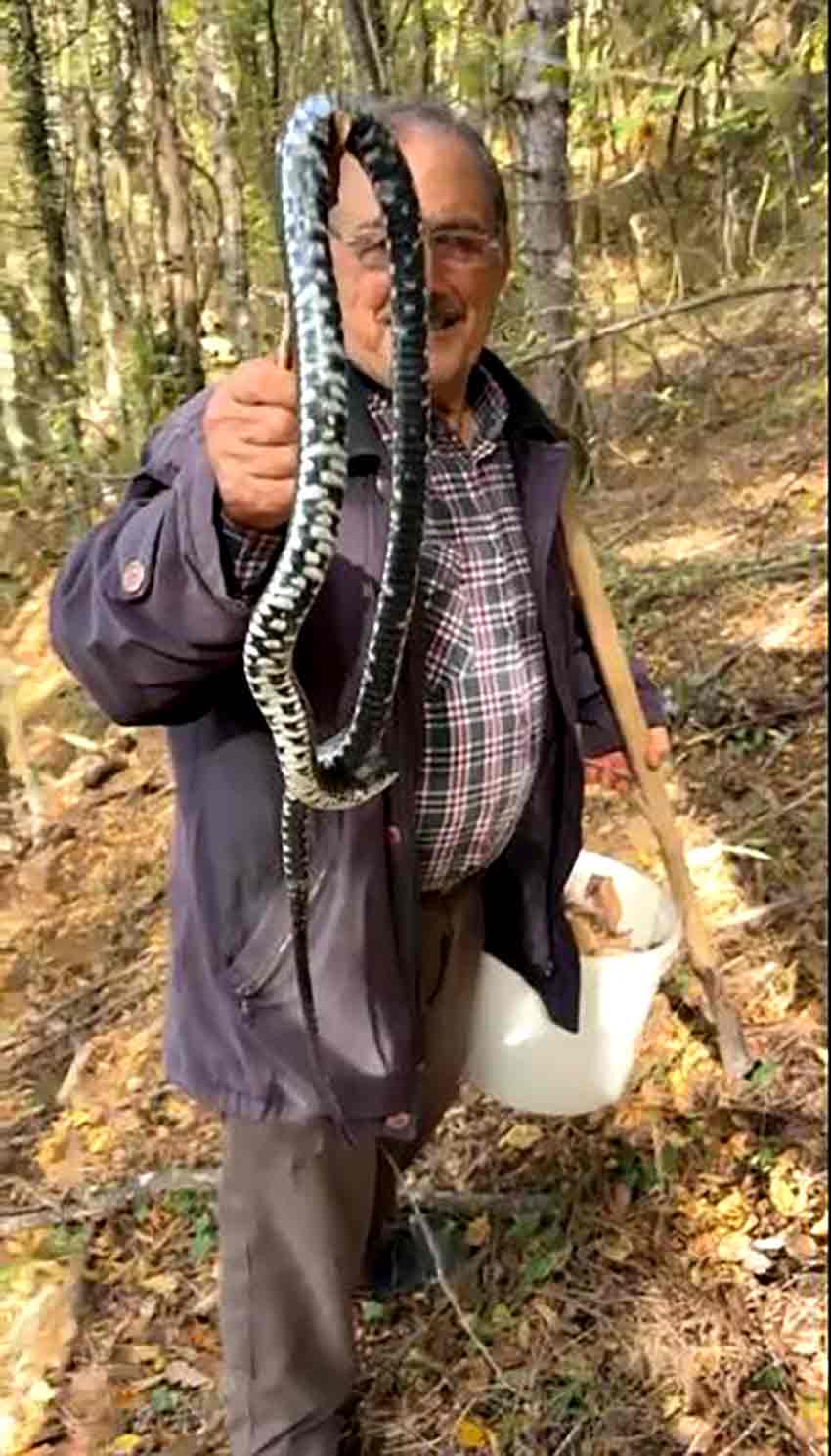 Ancak mantar toplarken karşısına boyu iki metreye yaklaşan bir yılan çıktı. İnsanın aklına çöldeki bahtsız bedevi hikayesini getirecek bir olay şeklinde gelişen bu durum karşısında şaşkına dönen emekli vatandaş yılanı bir sopayla yakalayarak günün hatırası olarak objektiflere de bu pozu verdi ve yılanın adını Güney Amerika’nın ünlü “Anakonda” yılanına nazire olacak şekilde “Babakonda” olarak koyduğunu açıkladı.
