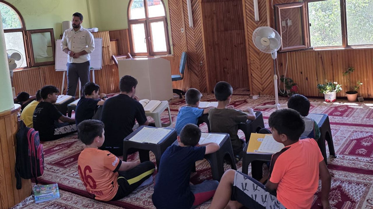 Yaz tatilinde camiye gelen çocukların hem ibadetlerini yerine getirmeleri hem de Kur'an-ı Kerim eğitimi almaları için büyük emek veren genç imam, her ders sonunda başarılı olan öğrencileri oyuncak ve çeşitli hediyelerle ödüllendiriyor.