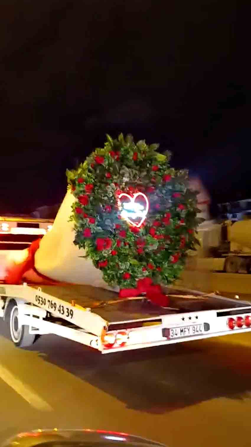İŞ MAKİNESİNİN ÜZERİNDE DEV BUKET