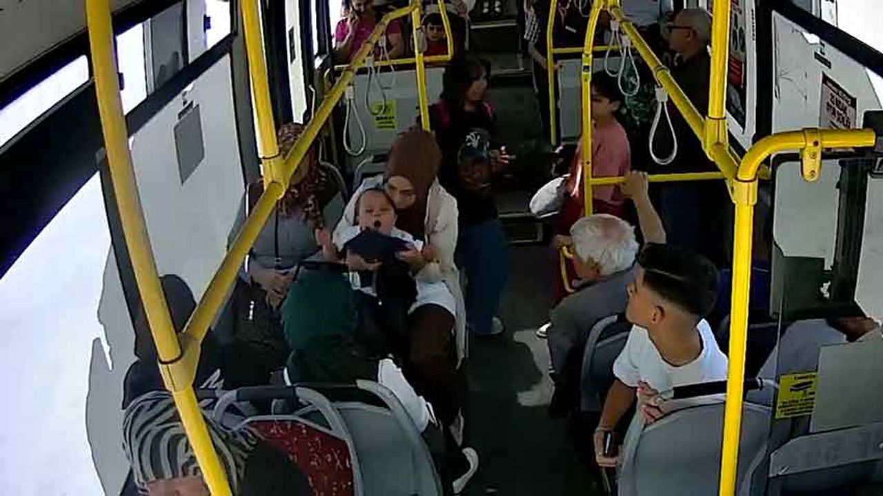Karaman'da halk otobüsünde boğazına şeker kaçarak boğulma tehlikesi geçiren bebek, şoförün Heimlich manevrası sayesinde kurtarıldı. O anlar güvenlik kamerasına yansıdı.