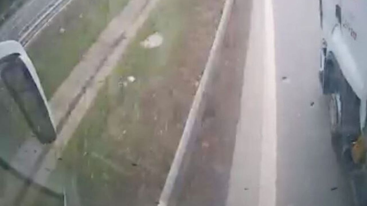 Kaza anının güvenlik kamerası görüntüleri ortaya çıktı. Otobüsün güvenlik kamerasına yansıyan görüntülerde, tırın bir anda otobüse doğru şerit değiştirdiği görülüyor. Otobüs şoförünün korna çalmasına rağmen tır otobüse çarpıyor. Daha sonra refüje çarpan otobüs toprak zemine sürükleniyor. Tır ise durmadan uzaklaşıyor.