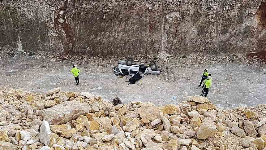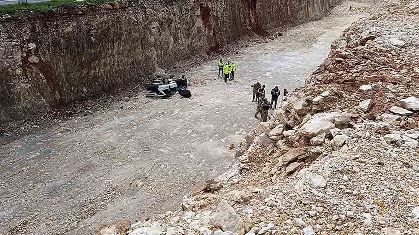 Şanlıurfa-Gaziantep kara yolunda meydana gelen kazada, kontrolden çıkan otomobil yol yapım çalışması kapsamında kazılan yaklaşık 10 metrelik çukura devrildi.