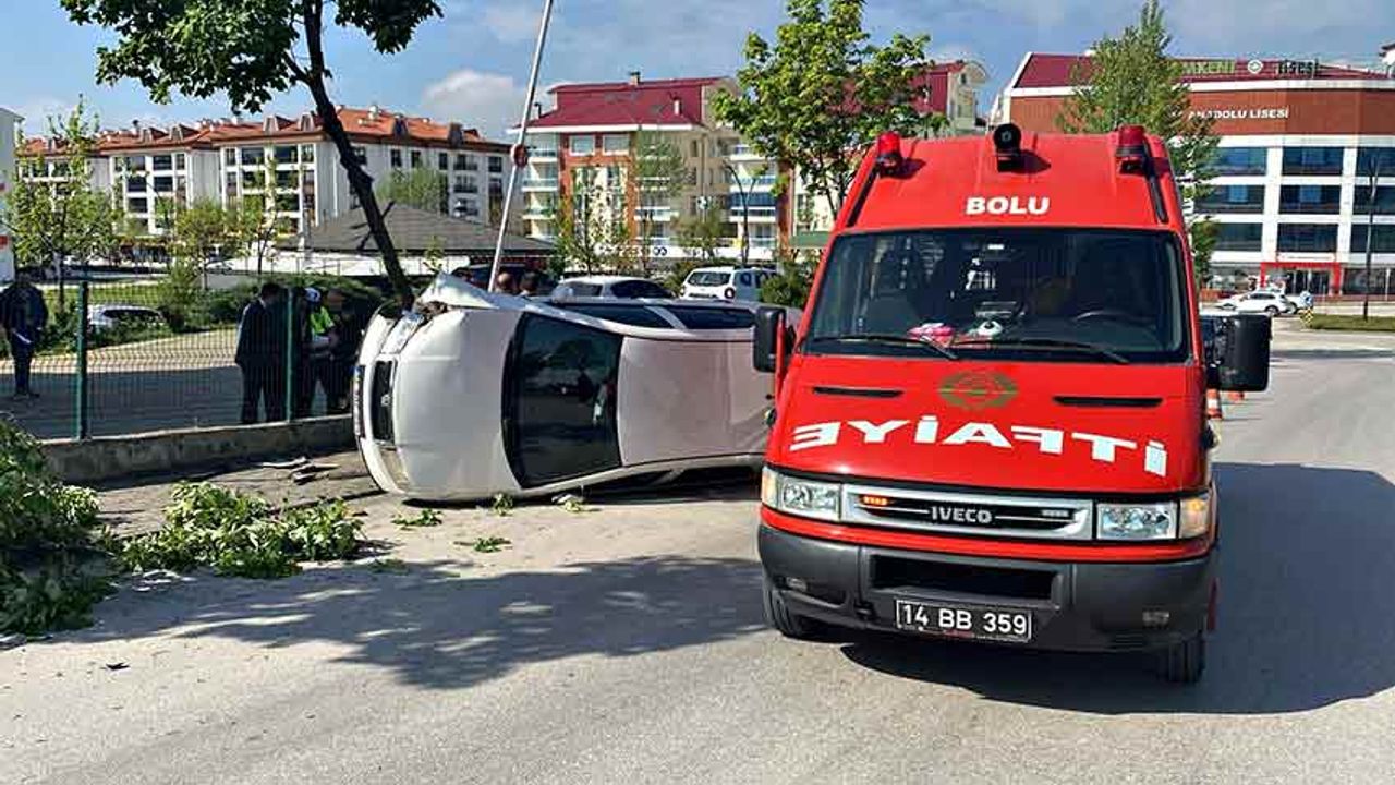 Bolu'da rampa yukarı çıkarken kontrolden çıkarak yan yatan otomobilin sürücüsü hafif şekilde yaralandı.