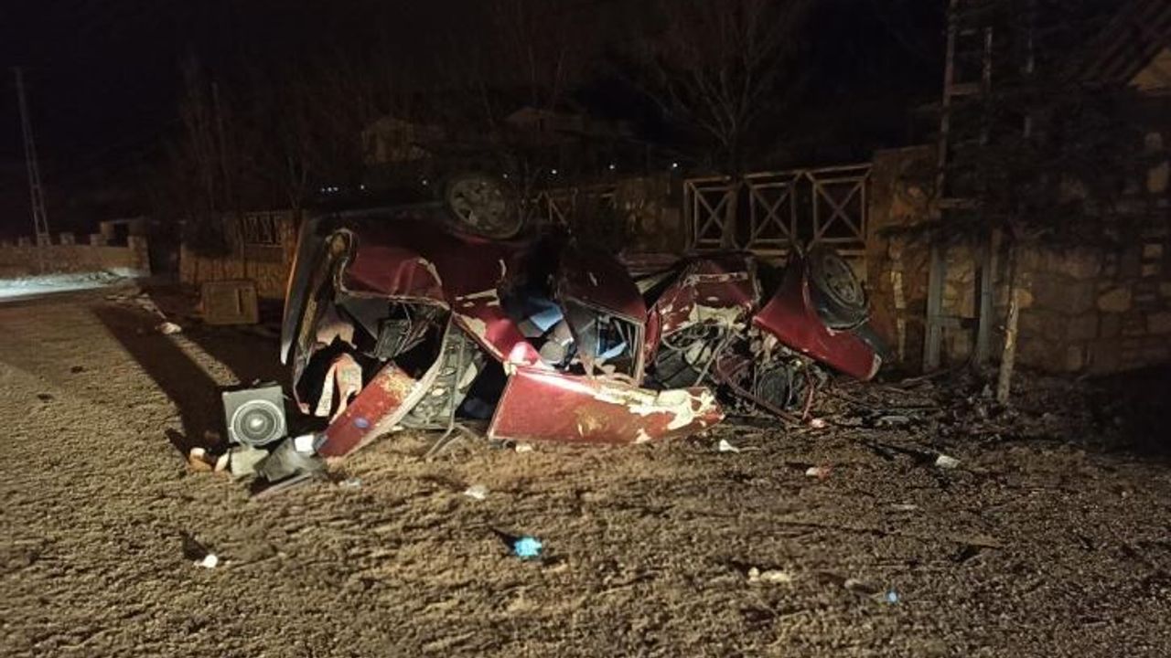 Takla atan otomobil kazanın şiddetiyle adeta hurdaya dönerken, sürücü H.S. ile araçta bulunan A.K. araç içinde sıkışarak yaralandı.