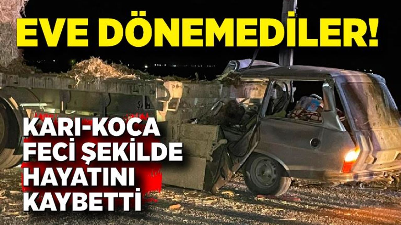 Kaza, akşam saatlerinde merkeze bağlı Kızık köyü yakınlarında meydana geldi. Edinilen bilgiye göre, şehir merkezinden Kızık köyüne gitmekte olan Orhan Şahin (52) yönetimindeki 70 EA 329 plakalı otomobil, arıza nedeniyle yol kenarında duran İ.Ç. idaresindeki 63 AHV 801 plakalı mısır sapı balyası yüklü tıra arkadan çarparak altına girdi. İhbar üzerine olay yerine sağlık, itfaiye, polis ve jandarma ekipleri sevk edildi. Güvenlik güçleri kaza yerinde tedbir alırken, sağlık ekibi yaptığı kontrolde sürücüsü ve yanında bulunan İran uyruklu eşi Roya Jigari'nin (50) olay yerinde hayatını kaybettiği belirlendi. Cumhuriyet Savcısının kaza yerinde yaptığı incelemenin ardından vinçle kaldırılan tırın römorkunun altından otomobil kurtarıldı. Araçta hayatını kaybeden karı-kocanın cansız bedeni daha sonra cenaze aracına koyularak Karaman Eğitim ve Araştırma Hastanesi morguna kaldırıldı.